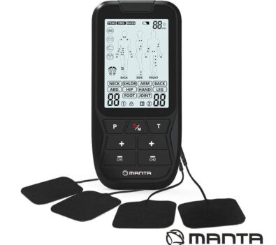 – Dimensões: 64x134x17 mm€55.99 Iva Inc.Electroestimulador Muscular Portátil c/ 4 Eléctrodos MANTA