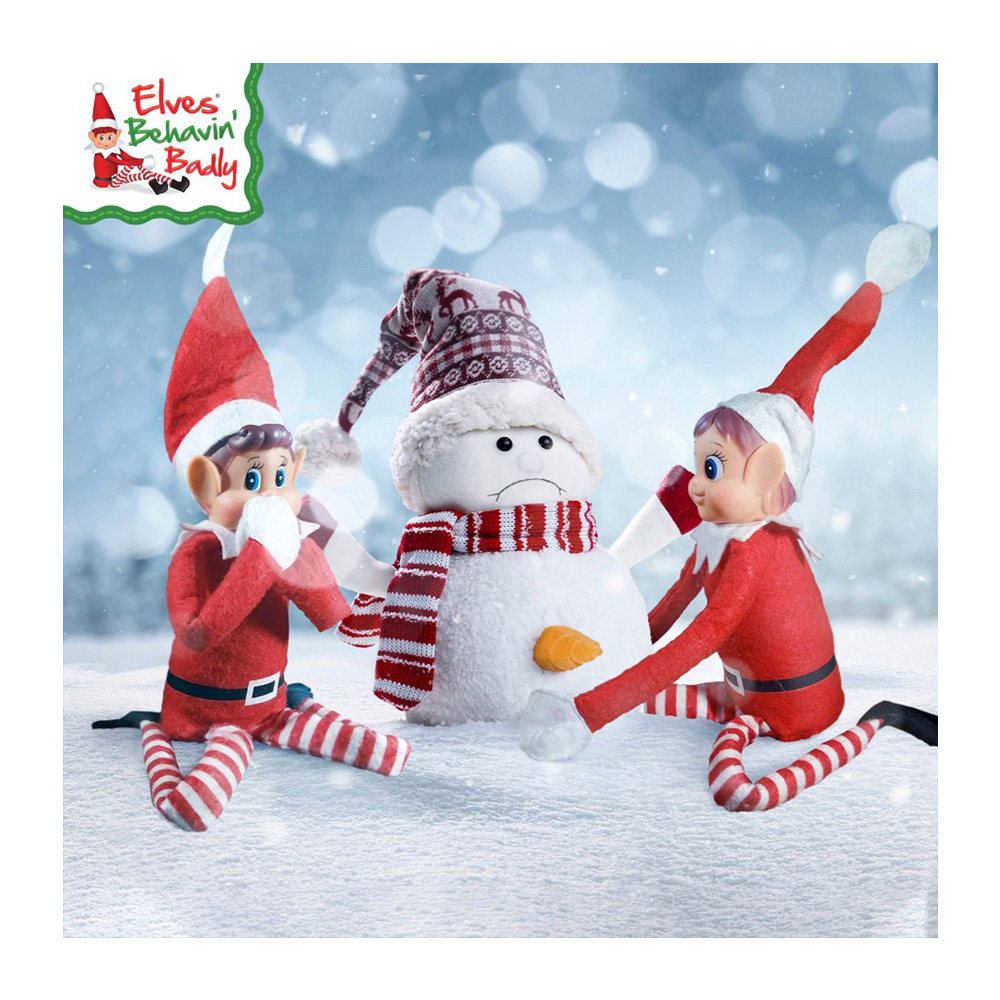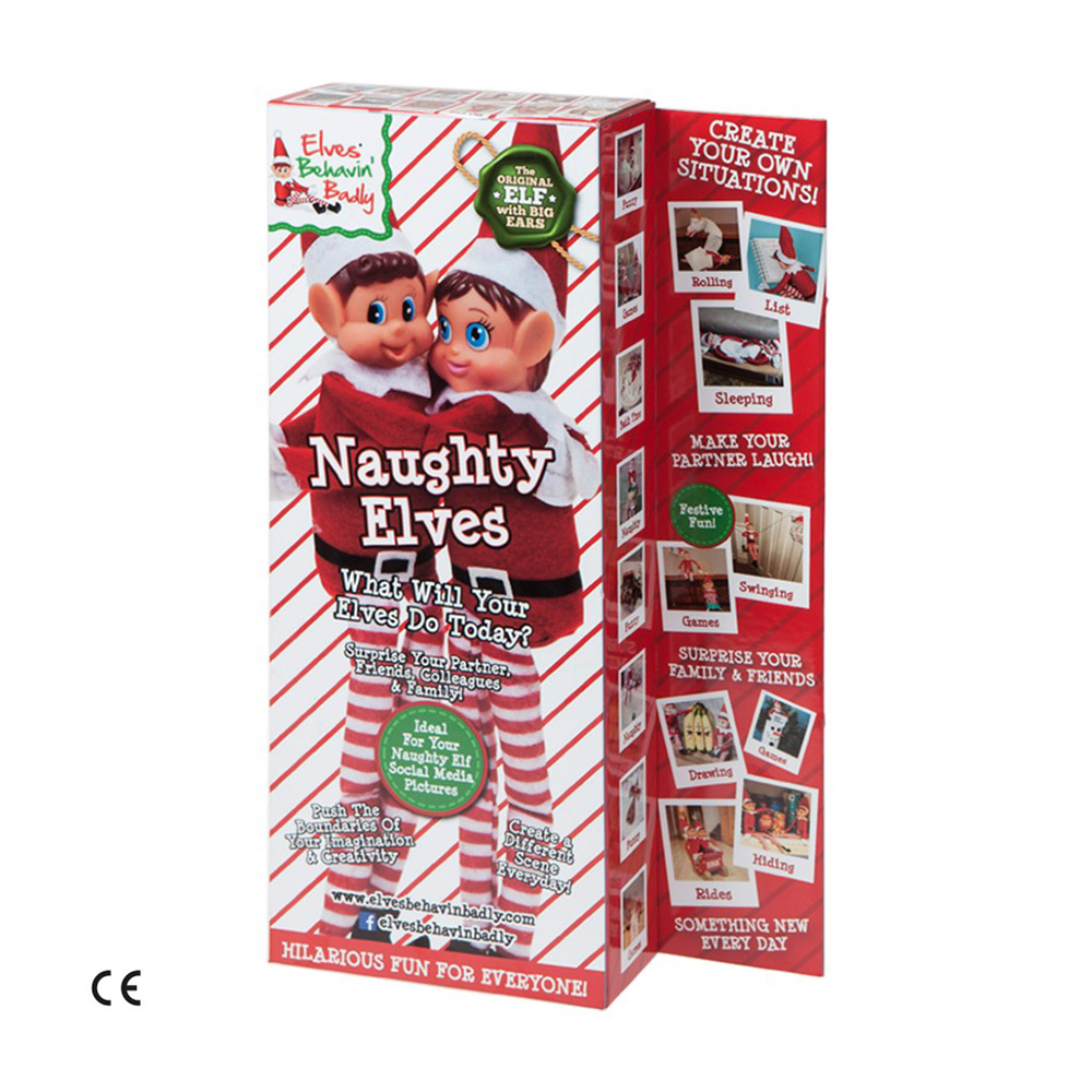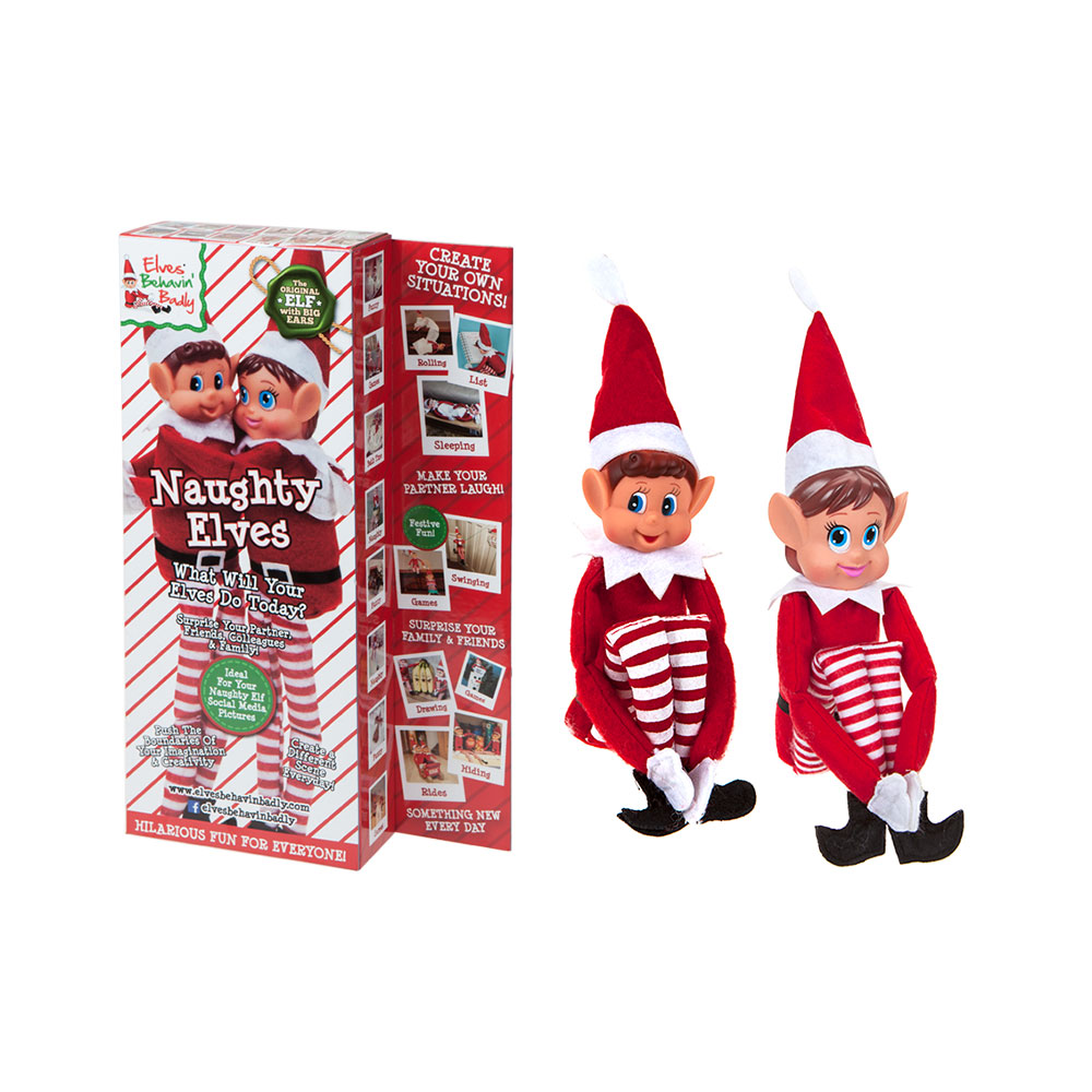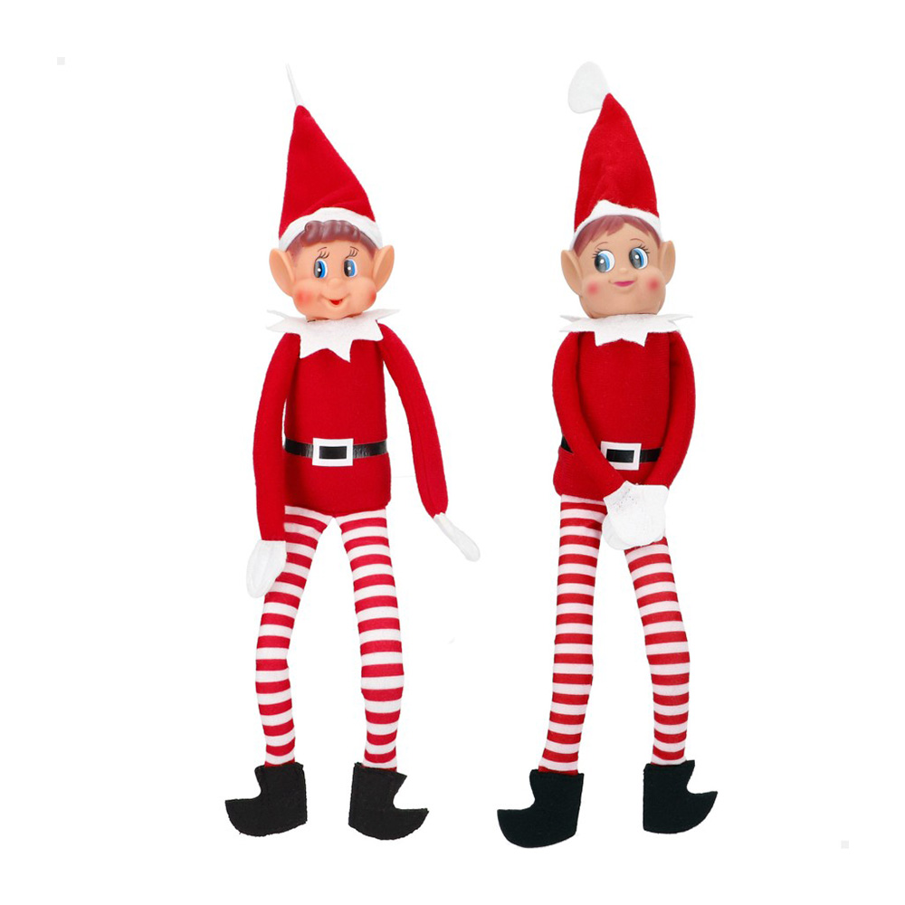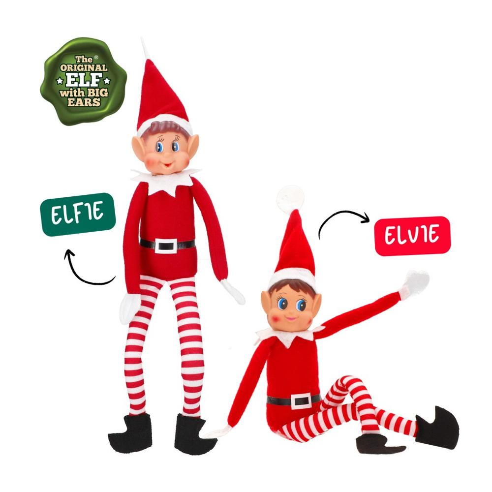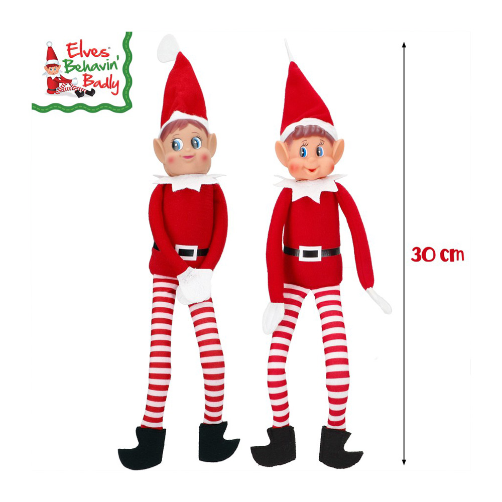 40 cm. Inclui 2 elfos (menino e menina) com pernas e braços, corpo macio e rosto de vinil.