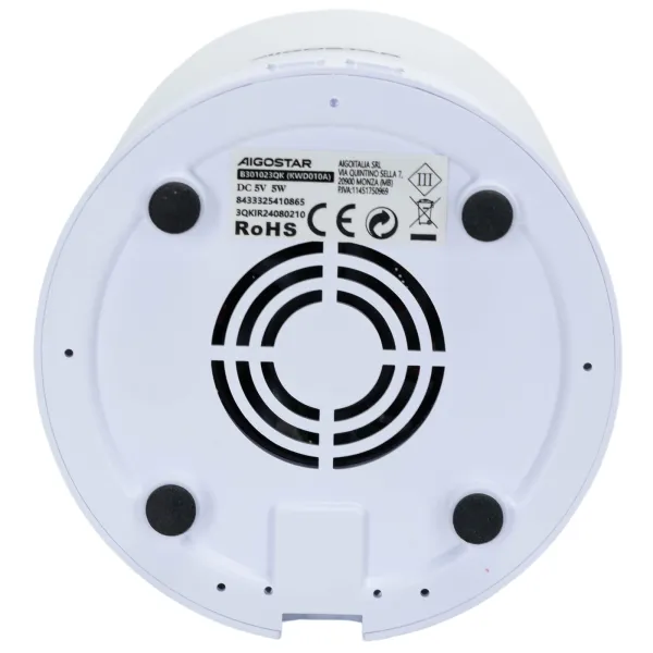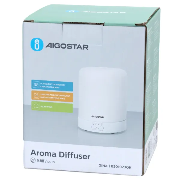 Nebulização ultra sónica;2 modos de nebulização (nebulização contínua/nebulização intermitente);Temporizador 1H/2H;Modo de luz ambiente com gradiente RGB;Luz de cena de seis cores;Material PP de qualidade alimentar