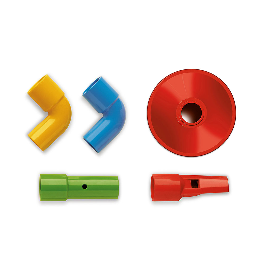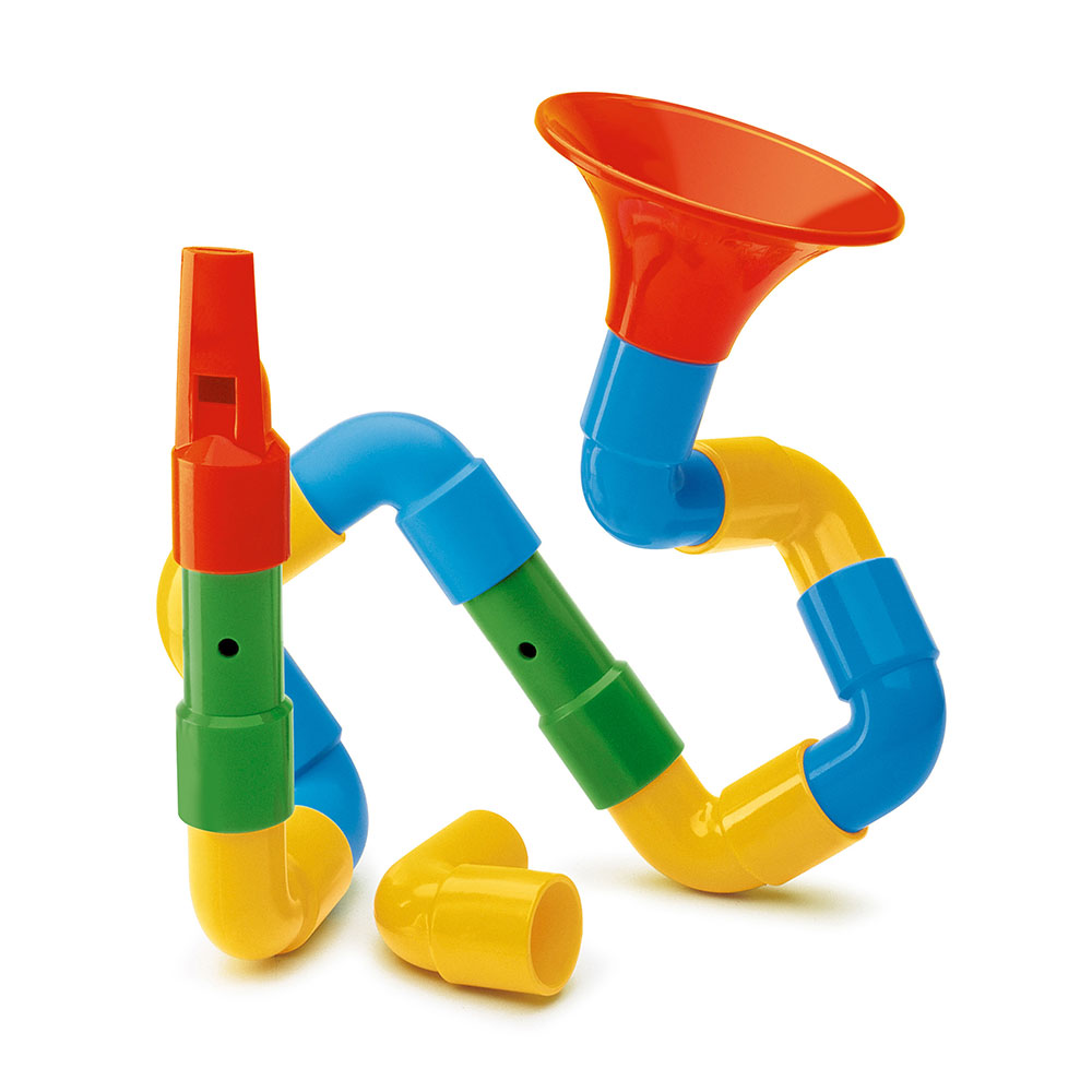 Com a combinação de 16 peças podes criar diversas sonoridades e perceber a dinamica original dos diferentes instrumentos de sopro, sempre alterando a sonoridade e recriando novos instrumentos, estimulando a inteligencia emocional e o desenvolvimento de habilidades motoras e de coordenação.