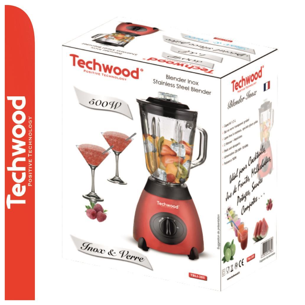 Liquidificador 500W 1.5L C/ Jarro de Vidro Vermelho TECHWOOD