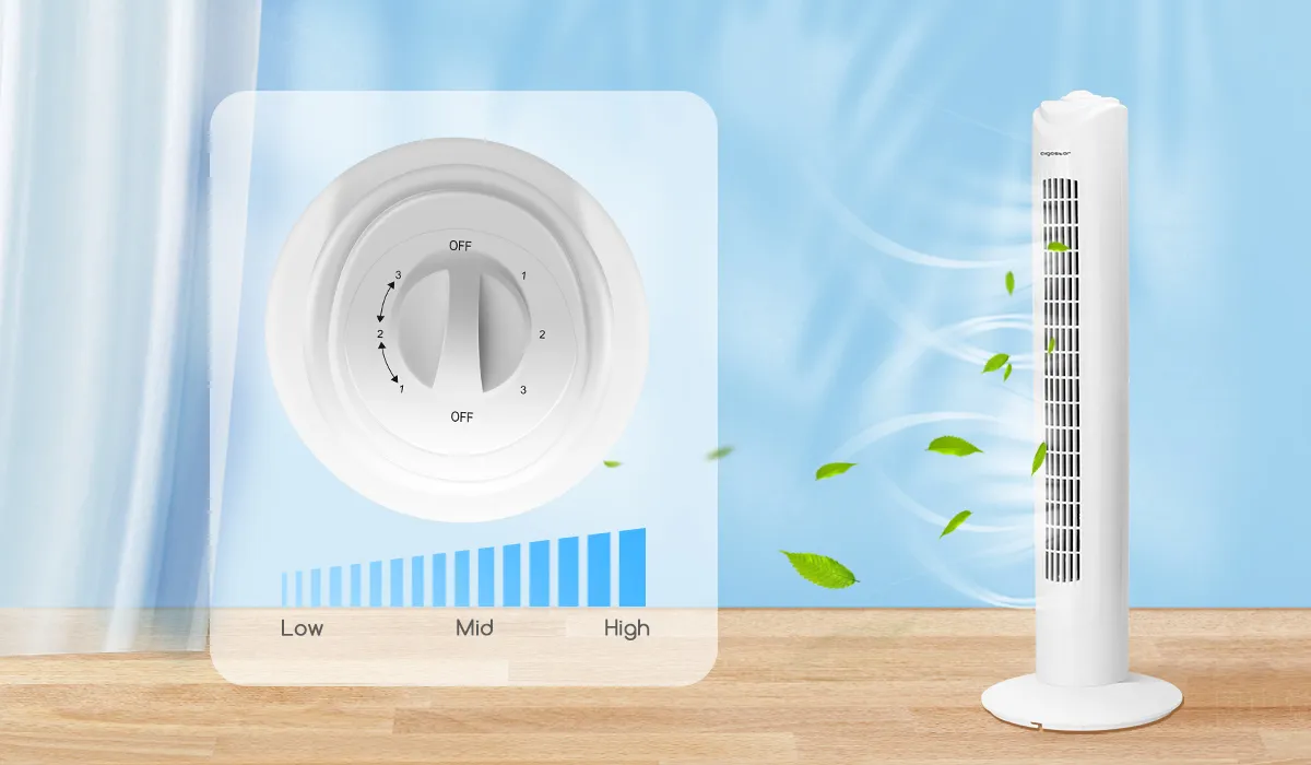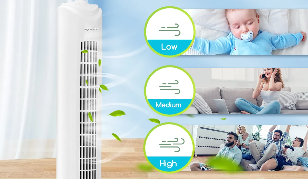 Ventilador de torre, 30 polegadas, 3 velocidades, branco